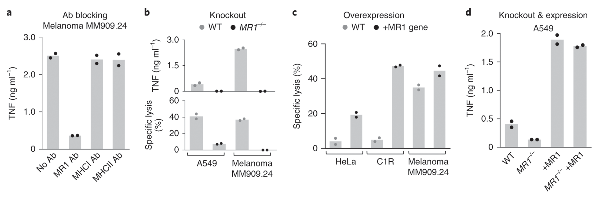Fig. 3: MR1 is the cancer cell-expressed target of MC.7.G5.