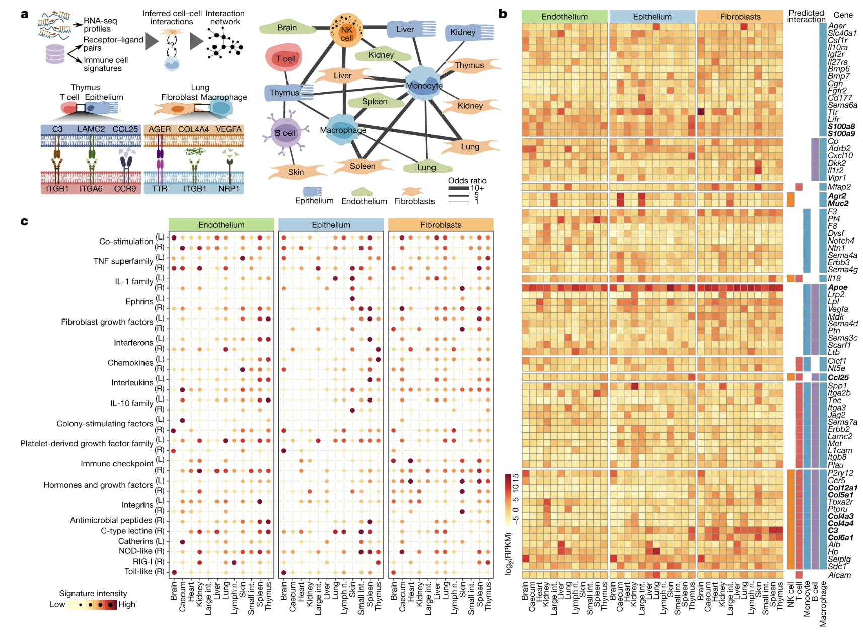 Fig. 2: Gene expression of structural cells predicts cell-type-specific and organ-specific crosstalk with haematopoietic immune cells.