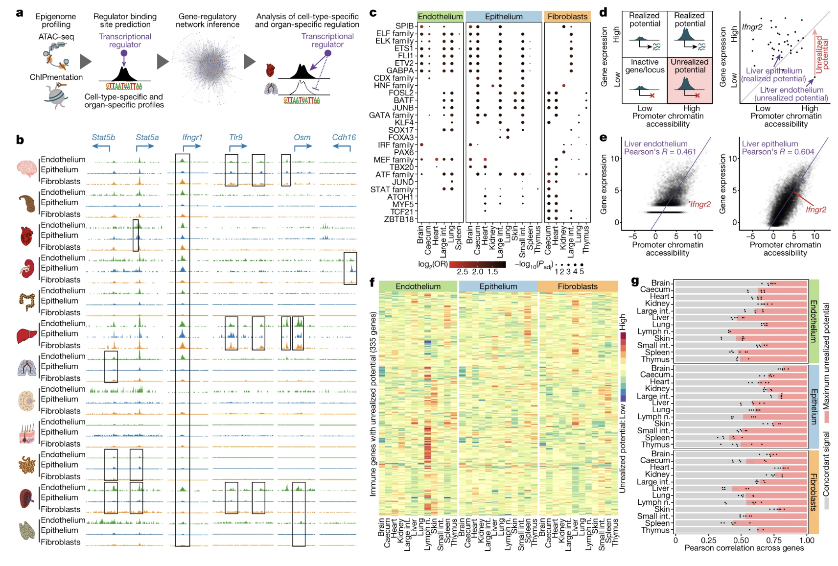 Fig. 3: Structural cells implement characteristic gene-regulatory networks and an epigenetic potential for immune gene activation.