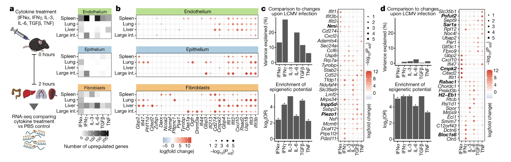 Fig. 5: Cytokine treatment induces cell-type-specific and organ-specific changes in structural cells in vivo.